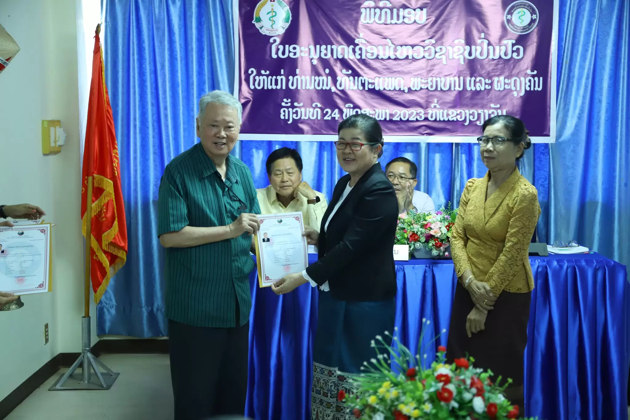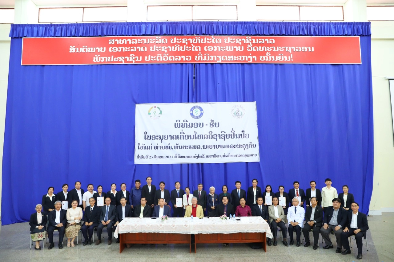 ພິທີມອບໃບອະນຸຍາດເຄື່ອນໄຫວວິຊາຊີບປິ່ນປົວ ທີ່ ພະແນກສາທາລະນະສຸກ ນະຄອນຫຼວງວຽງຈັນ