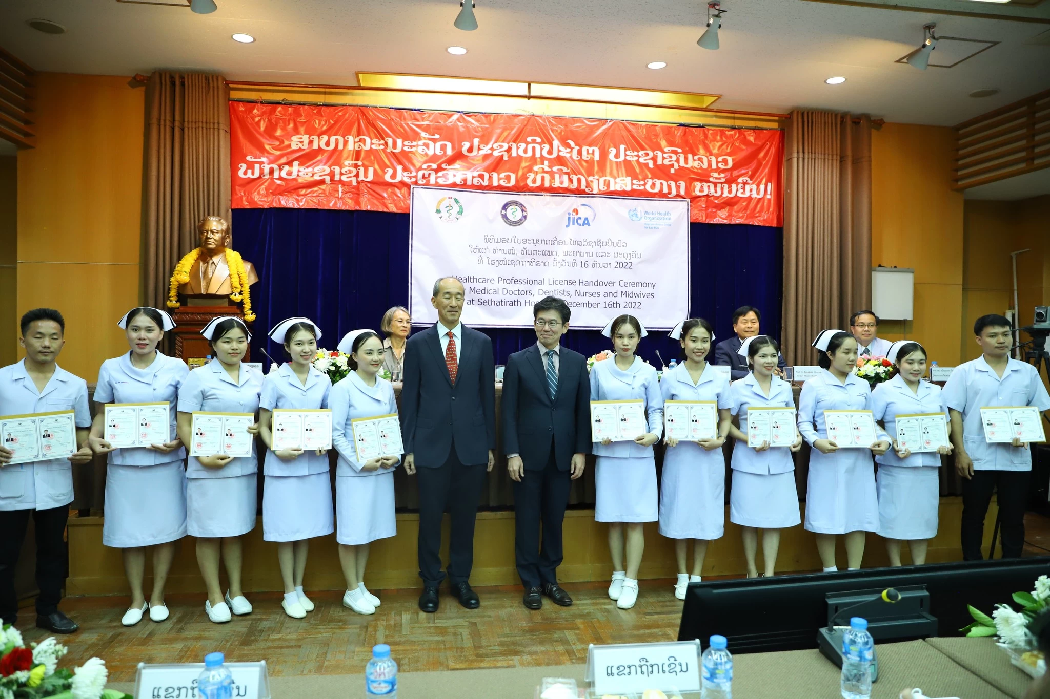 ພິທີ ມອບ-ຮັບ ໃບອະນຸຍາດເຄື່ອນໄຫວວິຊາຊີບປິ່ນປົວ ໃຫ້ແກ່ທ່ານໝໍ, ທັນຕະແພດ, ພະຍາບານ ແລະ ຜະດຸງຄັນ ທີ່ເຄື່ອນໄຫວວຽກງານບໍລິການປິ່ນປົວຢູ່ແຂວງວຽງຈັນ