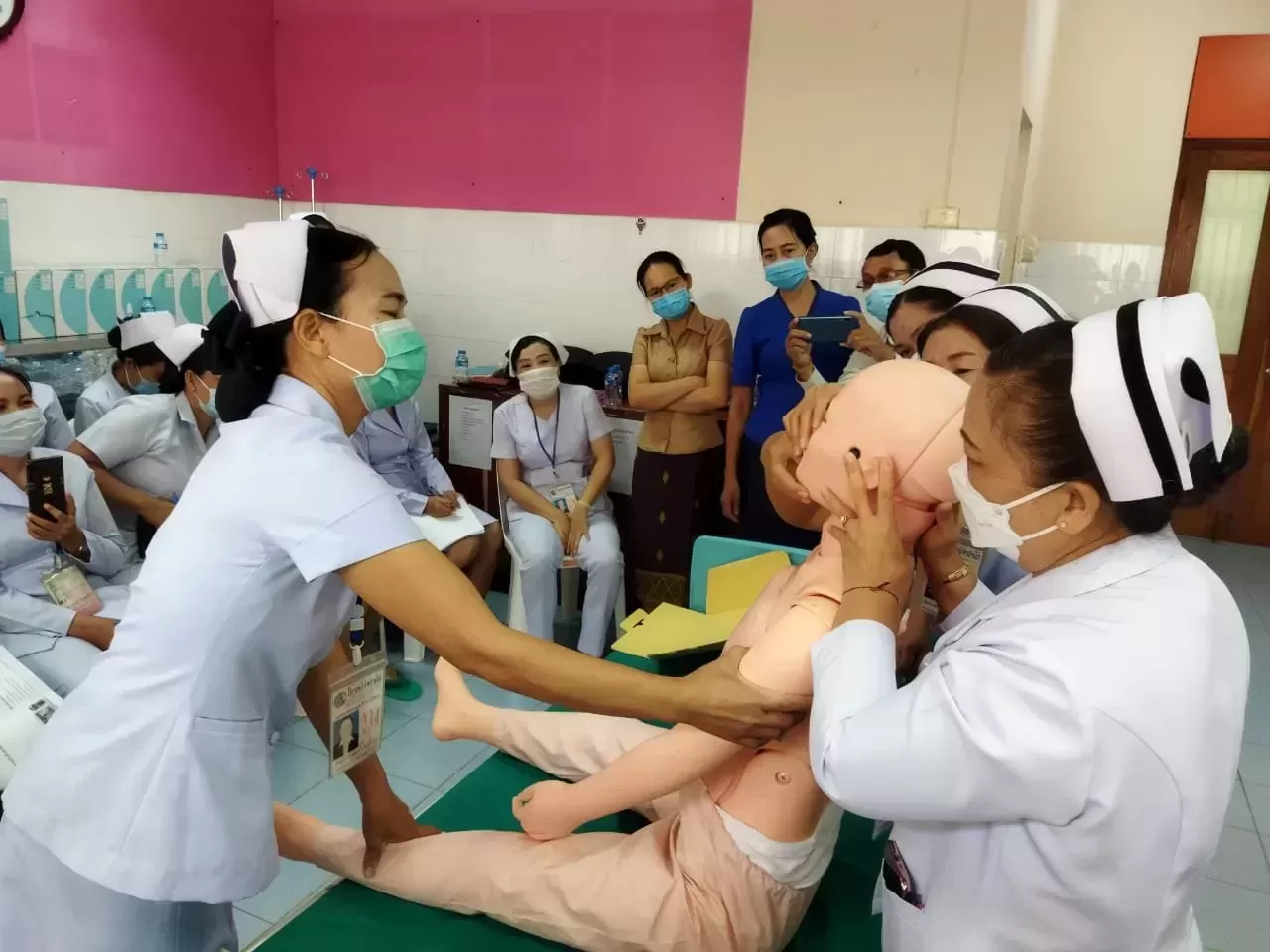 ຊ່ຽວຊານ ໂຄງການພັດທະນາ ແລະ ຮັບປະກັນຄຸນນະພາບວິຊາຊີບປິ່ນປົວແບບຍືນຍົງ (JICA) ຮ່ວມກັບຄະນະກໍາມະການ ວິຊາຊີບປິ່ນປົວພະຍາບານ/ຜະດຸງຄັນ ສະພາຄຸ້ມຄອງວິຊາຊີບປິ່ນປົວ ແລະ ຄູຄລີນິກຈາກໂຮງໝໍສູນກາງ ລົງຢ້ຽມຢາມ, ສັງເກດການ ແລະ ແລກປ່ຽນຄວາມຄິດເຫັນ ໃນການກະກຽມຈັດຕັ້ງປະຕິບັດແຜນການຝຶກງານດ້ານວິຊາຊີບສຳລັບພະຍາບານ ຢູ່ ໂຮງໝໍແຂວງຄຳມ່ວນ, ຫຼວງພະບາງ, ວຽງຈັນ, ຈໍາປາສັກ ແລະ ສາລະວັນ ໃນເດືອນ ສິງຫາ 2022