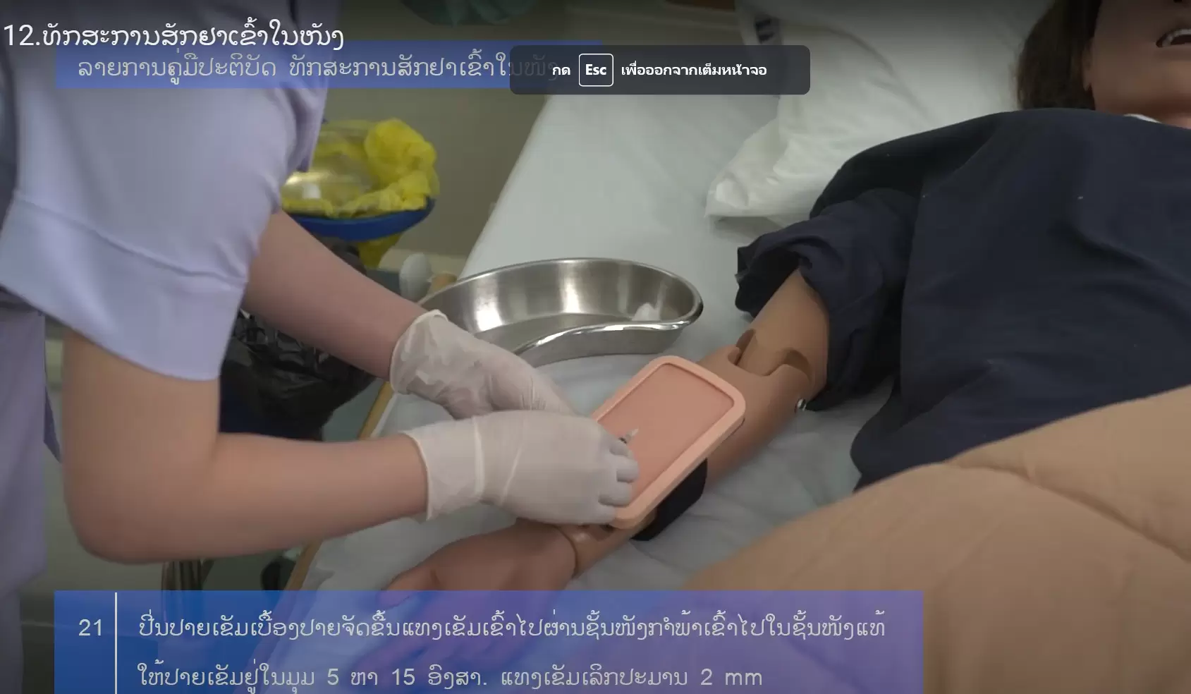 4. ທັກສະການອາບນໍ້າເທິງຕຽງເເບບສົມບູນ (ການອາບນໍ້າເທິງຕຽງ, ການສະຜົມຄົນເຈັບເທິງຕຽງ)